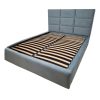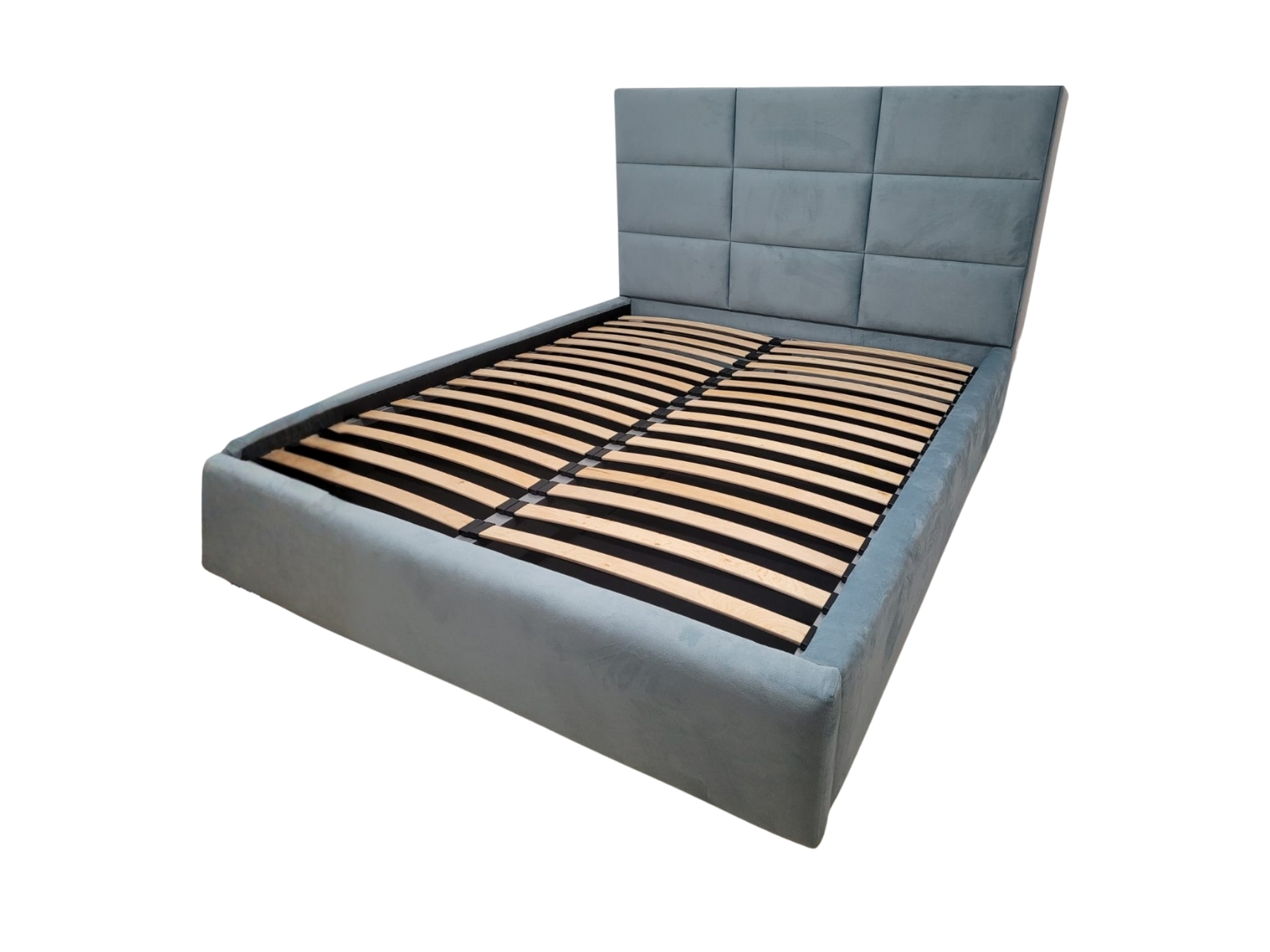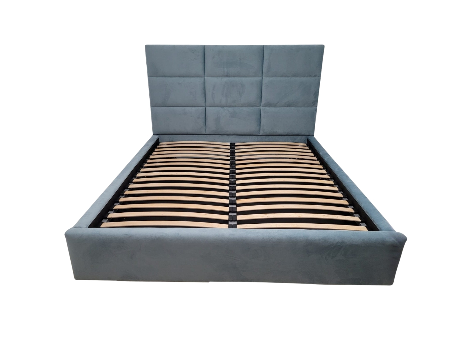 Tăblia patului este compusă din segmente pătrate, creând un joc vizual simetric și modern. Liniile drepte și proporțiile armonioase conferă patului un aspect versatil, ușor de integrat atât în decoruri contemporane, cât și în interioare clasice sau urbane.